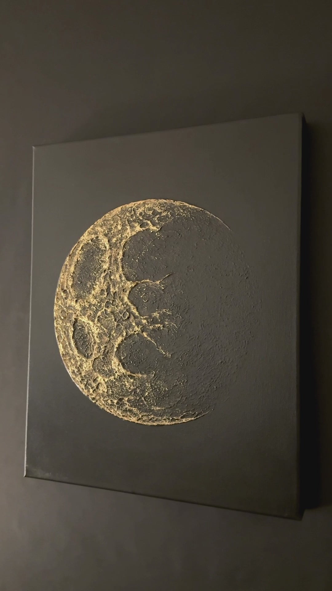 Materials: wood, linen canvas, water soluble paints, water soluble art texture paste, artificial gold leaf.